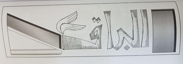 تصميم مقترح لرأس صفحة جريدة يمثل (اسم لصحيفة وشعراها) ويلاحظ توظيف علاقات تصميمية مبتكرة في رأس الصفحة بين (الآذان والعنق واللافتة).