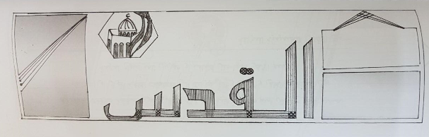 لافتة صحيفة ويلاحظ الارتباط بين الاسم والشعار، وقد صممت آذان الصحيفة بتوظيف هندسي بسيط وقد مزج بين الافقي والعمودي.