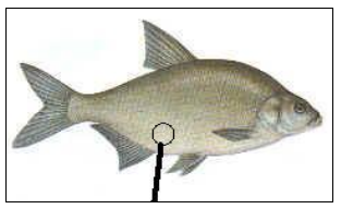 (الشكل 5) موضع وخز الإبرة في السمكة