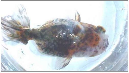 (الشكل 2) سمكة مصابة بمرض الاستسقاء البطني (Abdominal dropsy)
