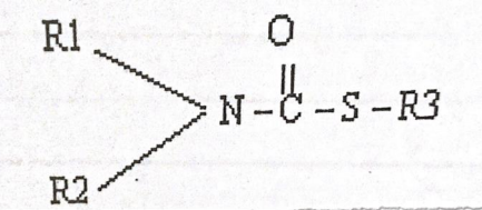 المجموعة الثانية: ثايوکاربامیت Thiocarbamate وهي المركبات الحاوية على الكبريت بدلا من مجموعة Hydroxyl-oxygen لحامض الكارباميك وبذلك يصبح تركيبها العام: