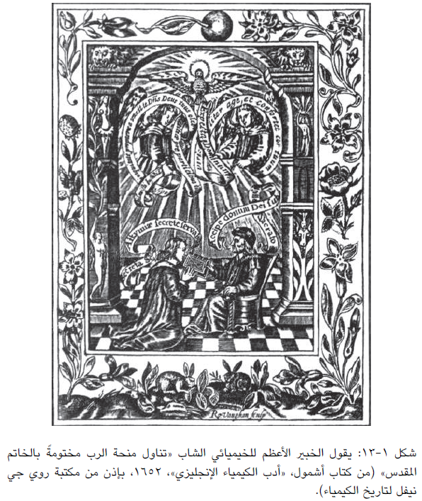 هل كان أعظم شعراء إنجلترا جهبذًا حقيقيٍّا، أم أنه كان مجرد بارعٍ في كتابة الأبيات المقفَّاة؟ تتضمن « حكاية خادم القُمُّص » لجيفري تشوسر (1340-1400) معرفة مفصَّلة بالعمليات الخيميائية، حتى إنَّ إلياس أشمول أدرج هذا العمل في كتابه » أدب الكيمياء الإنجليزي » الذي نشر عام 1652 بين أعمالٍ أخرى لآخرين من اشهر الفلاسفة الإنجليز الذين كتبوا « طقوس الهرمسية » في لغتهم القديمة الخاصة ويُظهر كلٌّ من الشكلين 1-3 و 1-4 رسومًا من كتاب « أدب الكيمياء الإنجليزي » في الشكل الأول، يناول الخبير الأعظم أسرارًا متعلقة بالخيمياء للخيميائيِّ الشاب قائلًا -تناول منحة الرب مختومةً بالخاتم المقدس- أما الشكل التالي، فيُظهر معملًا مُمَوَّلًا تمويلًا جيدًا يجري فيه العمل على قدم وساق، في إشارة إلى أن الخبير الشاب قد أَوْلى اهتمامه بالفعل للحصول على مشورة أكاديمية جيدة. وقد بات ناجحًا بعد سنوات في الحصول على المعونات والمنح، ويتقدم بخطًى وئيدة نحو الترقي واعتلاء المناصب.