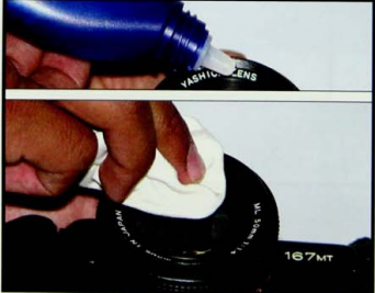 - سائل التنظيف يوجد علبة خاصة بالعدسات يفضل استخدامها قبل التصوير حتى تكون العدسة نظيفة أثناء التصوير كما بالشكل (125) .