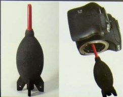 - أو من خلال المنفاخ الذي يؤدي بالغرض ولا تستخدم فمك للنفخ ، لأن ذلك يؤدي إلى تجمع اللعاب على العدسة ولما يحتوي هـواء القسم من رطوبة عالية ، قد تؤدي إلى تلف أجزاء من الكاميرا كما بالشكل (126) .