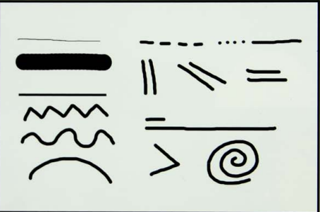 معظم التكوينات بالصور تتكون من مجموعة أشكال تتضمن إيحاءات بالايقاع والوحدة والتوازن وهـو الفكرة الرئيسة وأساس التصميم في تقسيم المساحة ، أو فصل الأشكال أو بداية ونهاية الأشكال الناتجة ويتكاثر الخطوط تتضح العلاقات ويتم عن طريقهـا التبسيط أو التعقيد في وصف الإيقاعات عنـد بنـاء الصورة وطريقة توزيعها واتجاهاتها وسمكها وما تحصره من مساحات أو كتل وأشكال، يكون الخط فيها ذا معان ودلالات كما بالشكل (127)