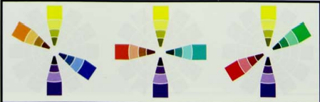 يكـون فـرق لـون أو ثلاثـة ألـوان بين الألوان الأربعـة المختـارة ضمـن الدائرة اللونيـة كـما بالشكل (151).