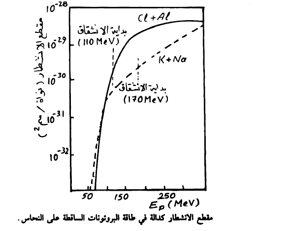 كما ويمكن أن يحدث الانشطار لعدة أنوية متوسطة مثل البروم - 79 والفضة 107 والقصدير 118. حيث يمكن التعرف على شظايا الانشطار بالتحليل الكيميائي للنواتج. يبين الشكل (1) مقطع الانشطار كدالة في طاقة البروتونات الساقطة على النحاس.