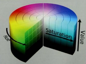 يطلق عليه أيضـا نمـوذج ( التدرج ، التشيع ، الإضاءة ) (HSB) ، أو نموذج (HSV ) ( التدرج التشيع، القيمة ( الدرجة ) في برامج الرسوم المختلفة ، ويشير هذا إلى تصميم الألوان مع اختيار الدرجة ، والاستخدام التالي للقيمـة وصفـاء اللـون كـما بالشكل رقم ( 259 ) .