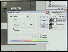 لقد تم تصميم نظام ( HSE ) بالطريقة التي ترى بها العين البشرية اللون ، فالحروف ترمز إلى التدرج (Hue) ، الإشباع ( Saturation ) ، الإضاءة (Brightness ) ، فالتدرج هو اللون نفسه أحمـر أو أزرق ، والإشباع هـو درجـة دسامة هـذا اللون ، والإضاءة تحدد إن كان اللون فاتحا أو داكنـا كـما بالشكل رقم ( 260 ) ، حيث يمكننا ضغط أي جزء من الخريطة الدائرية لاختيار لون ما ، ويلي خريطـة اللـون عمود رأسي للتحكم في درجات القيمة . وتعرض ثلاثة صناديق متتالية للقيم الرقمية للتدرج بالقيمة ، والصفاء الذي يمكن تغييره عن طريق الكتابة.