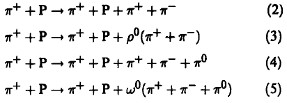 كما يمكن أن ينتج عن تشتت البايونات عن البروتونات تكون قمم أخرى حسب التفاعلات التالية: