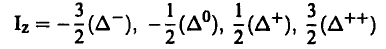 نلاحظ هنا أنه تكونت أربع حالات مشحونة من جسيمات Δ وهي -Δ++ ، Δo ،Δ+ ، Δ وباستخدام الأعداد الكمية، نجد أن: