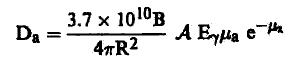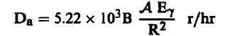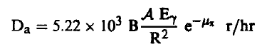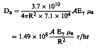 حيث تعطي الجرعة هنا بالرونتجن لكل ساعة (لاحظ هنا أننا أهملنا امتصاص إشعاع γ بواسطة الهواء)، γE بوحدات م.أ. ف A بالكوري، R بالسنتمترات.