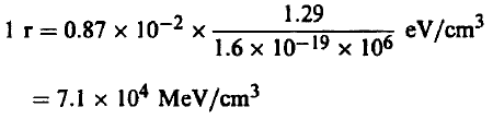 لاحظ أنه في حالة الماء فإننا نستبدل الوحدة (s.MeV/cm3) بالوحدة (s.MeV/g) وذلك لأن كتلة السنتمتر المكعب من الماء تساوي جرام واحد.