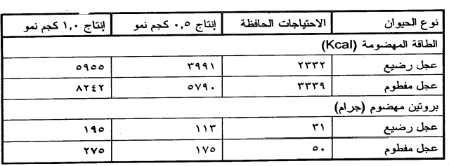 وعموما الاحتياجات الغذائية الإنتاجية للعجول تزداد مع زيادة معدل النمو اليومي كما هو واضح من الجدول السابق.