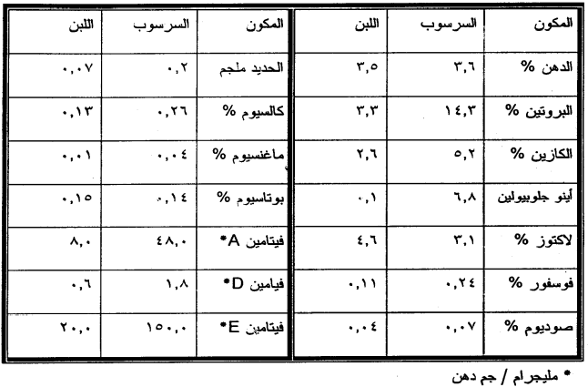 1- ويلاحظ أن وجود نسبة مرتفعة من الدهن في تكوين البديل تقلل مـن امتصاص الأملاح المعدنية مثل الكلسيوم والماغنسيوم.
