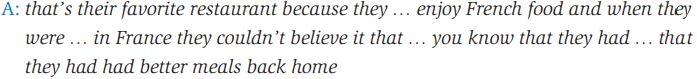 In the following example, note how the pauses (marked by …) are placed before and after verbs rather than at the end of sentences, making it difficult to get a clear sense of what this person is saying until we hear the part after each pause.