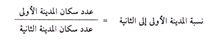 يمكن الوصول إلى تصور إحصائي لحجم المدينة الأولى، بالنسبة لباقي مدن الإقليم أو المدينة المهيمنة، وذلك إذا اتبعنا أسلوبا يأخذ في الاعتبار نسبة المدينة الأولى إلى المدينة الثانية من ناحية، ونسبتها إلى الثالثة، والرابعة مجتمعة من ناحية أخرى، كما في المثال التالي:
