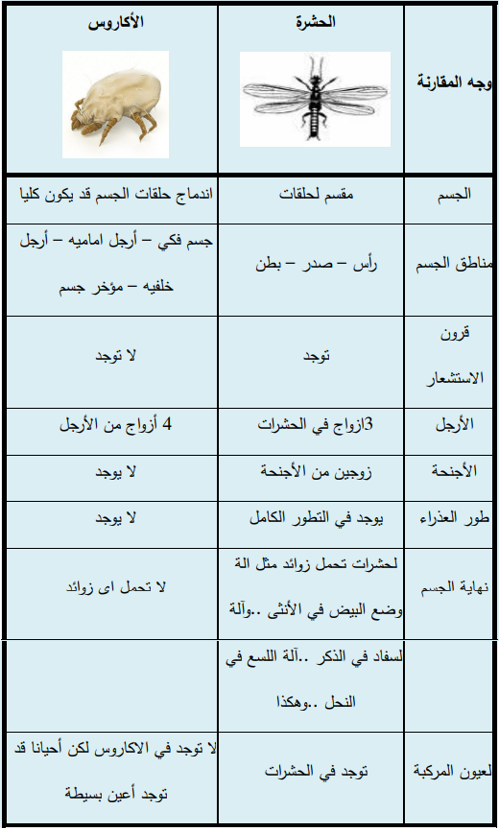 الفرق بين الحشرات والاكاروسات (الحلم)