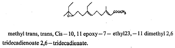 أعقب ذلك تشخيص هرمون ثانوي آخر في نفس الحشرة وكان تركيبه الكيمياوي هو Methyl trans, trans, cis-10, 11-epoxy-3, 7, 11-trimethyl 2,6 tridecadienate