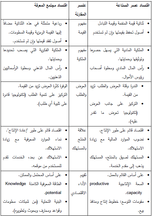 مقارنة بين اقتصاد مجتمع المعرفة واقتصاد عصر الصناعة