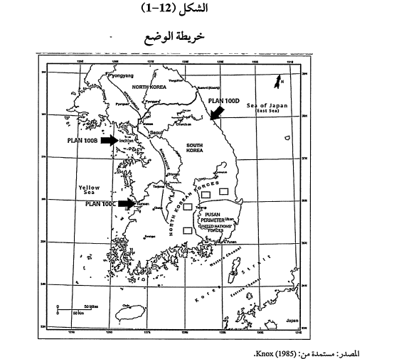 تمت عملية الإنزال البرمائي في إنشون بتاريخ 15 سبتمبر 1950 من قبل فيلق إكس کوربس الأمريكي، وغيرت العملية مجرى المعركة عندما بدت الأمور أكثر كآبة بالنسبة إلى قوات الأمم المتحدة. وقبل عملية الإنزال، سيطرت قوات كوريا الشمالية تقريبا على كامل شبه الجزيرة الكورية باستثناء محيط صغير قدره 140 ميلا حول مدينة بوسان المعروف باسم "محيط بوسان" (انظر الشكل 12-1). وبنجاح الجنرال ماك آرثر في عملية الإنزال في إنشون، قطع خطوط الإمدادات الكورية الشمالية ودفع الغزاة للاتجاه شمالا، وربما أنقذ قوات الأمم المتحدة من الإبادة (1992 Appleman). وصف الجنرال ماك آرثر عملية الإنزال في إنشون بأن فرص نجاحها كانت 1/5000. وقال أرلي کابس، وهو ضابط تخطيط في هجوم إنشون البرمائي: " وضعنا قائمة بكل عائق طبيعي ممكن تصوره، وقد تضمنت إنشون كل تلك العوائق" (16 :1994 Utz). وكان العائق الأكبر هو نطاق المد والجزر البالغ 32 قدما في إنشون، وزاد في صعوبته وجود قناة متعرجة تتسم بتياراتها الغدارة، والمسطحات الطينية الواسعة والشواطئ السيئة والكواسر البحرية الضخمة. ووقف إلى جانب ماك آرثر فريق تخطيط برمائي ذو كفاءة عالية بالإضافة إلى عنصر المفاجأة المطلقة. أدى الهجوم البرمائي إلى استعادة سيئول وقطع خطوط اتصالات كوريا الشمالية بشكل تام وسحق الهجوم الذي شنته في الجنوب. لقد أصابت الحركة الالتفافية في إنشون جيش كوريا الشمالية بالشلل التامCenter of Military History 1989)) .