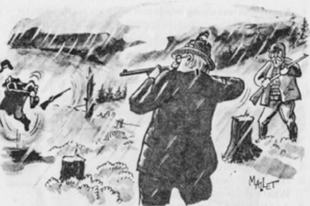 One day he was invited to go out shooting bears in the mountains. It was rather a rainy day, and by mistake Mr. Grey shot at one of the other hunters and hit him in the leg.