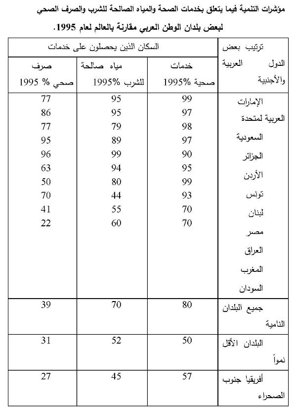 إن هذه المؤشرات بمجملها تعكس الفجوة بين الدول المختلفة في العالم وتعطي ما يبرر مدى ما وصلت إليه البلدان في مجال التنمية البشرية وتؤكد الحاجة إلى التنمية الشاملة في كافة المجالات الاقتصادية والاجتماعية والتي تنعكس حتما على كفاءة القوة البشرية التي هي إحدى أهم المقومات التنمية.