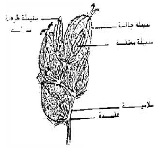 شكل (٣) سنيبلة جالسة، تحتوي على زهرة كاملة.
