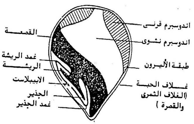 شكل (٥) قطاع طولي في حبة الذرة الرفيعة الحبوب.