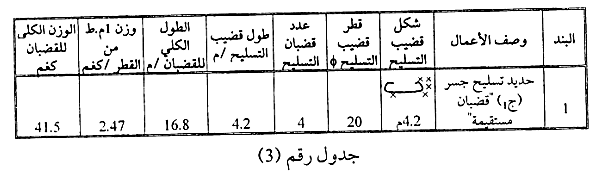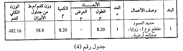 جدول خاص بكميات مقاطع حديد الجسور والأعمدة الحديدية :