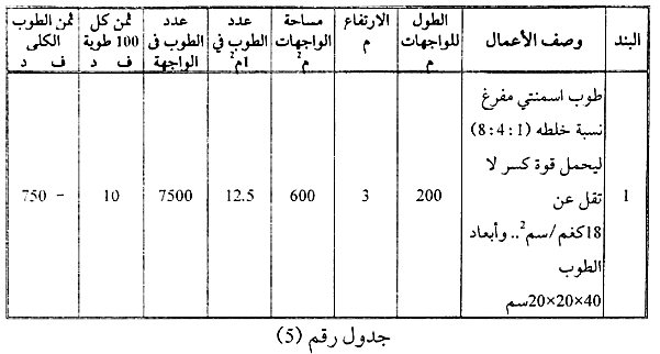 ملاحظة: هناك جداول أخرى لكل بند من بنود الأعمال كالقصارة، الدهان، البلاط...