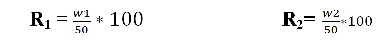 ثم تحسب النسبة المؤيه للمتبقي من متوسط قيم R1 وR2 وفى حالة اختلاف النتائج باكثر من