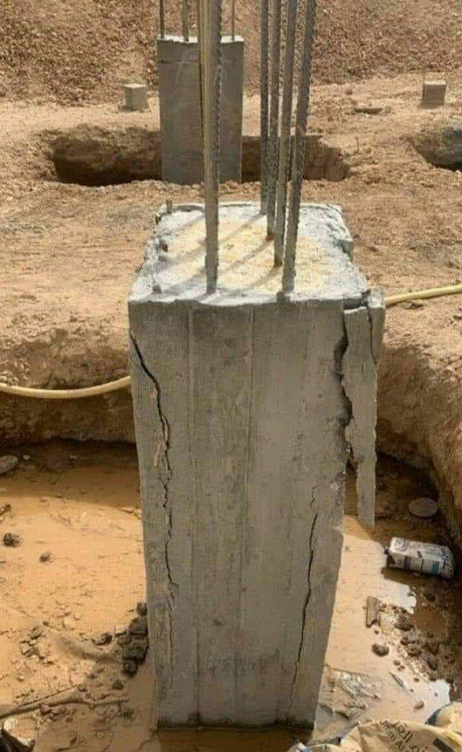 الخطأ: صب خرسانة العمود مع وجود ماسورة مياه بداخله.