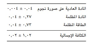 كيف إذن نلخص كل هذا؟ فيما يلي نعرض لأفضل تقديراتنا الحالية عن الإسهامات المختلفة في كثافة الطاقة، وذلك على صورة نسب مئوية من الكتلة الحرجة: