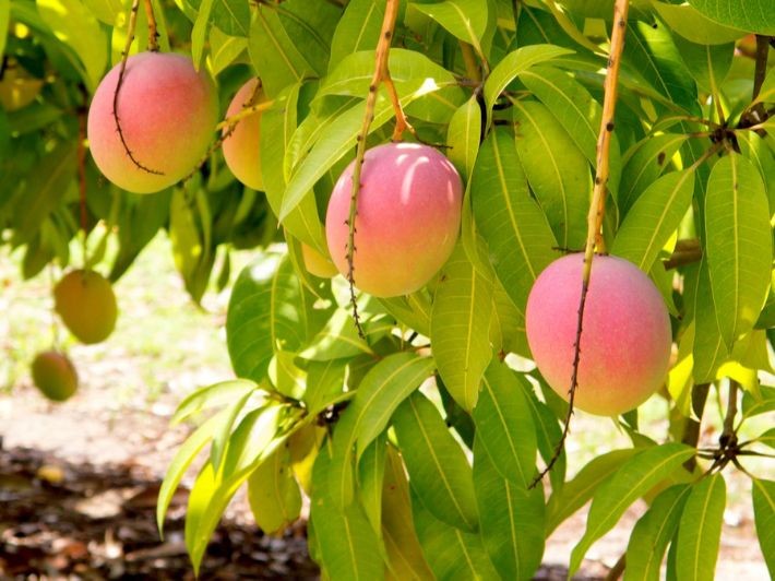شكل يبين أوراق المانجو وثمارها