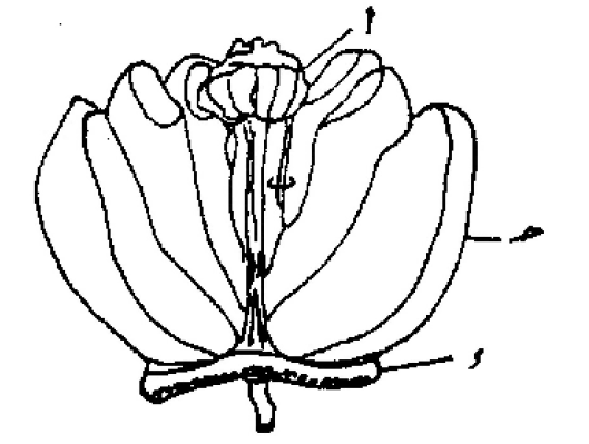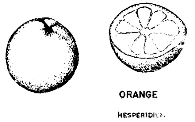 الشكل يبين مقطعا طوليا في ثمرة البرتقال أبو سرة حيث تبدو السرة (أ)