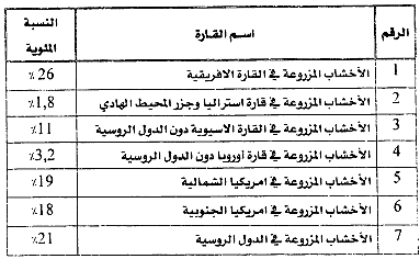 الجدول التالي يوضح توزيع الاخشاب في العالم