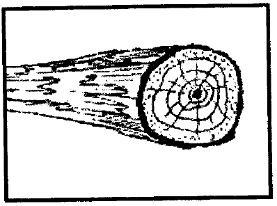 ويرجع هذا السبب إلى النمو غير الطبيعي خلال فترة نمو الشجرة وعدم وصول المادة الغذائية بالشكل المناسب، حيث يكون أسفل الشجرة ذا مقطع عريض ويصغر من الاعلى وهذا موجود في جميع الاصناف لكن بنسب متفاوتة، واذا زادت نسبة الانخفاض عن السنتيمتر لكل متر طولي فتصبح الأخشاب عديمة الانتظام في المقطع، كما في الشكل التالي: