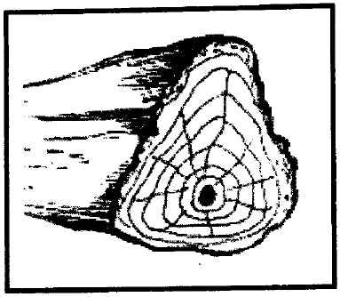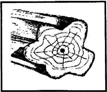 تنمو الحلقات السنوية بأشكال مختلفة، حيث تبدو كالنجمة وباتجاهات مختلفة، كما تظهر على شكل ارتفاعات وانخفاضات في محيط الشجرة، مما يؤدي لعدم الاستفادة من الأخشاب بالكامل، كما في الشكل التالي: