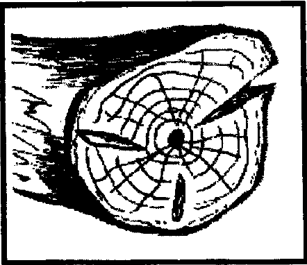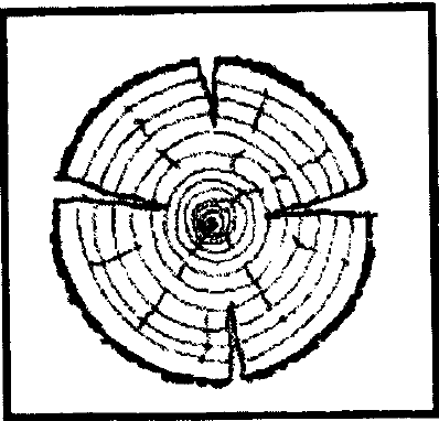 تنتج الشقوق الحلقية في الحلقات السنوية، والقلبية في خشب القلب عندما تتعرض جذوع الاشجار لقـوى شـد عنيفة، وذلك عند هبوب رياح قوية وعواصف. فتنتج شقوق نصف قطرية تتجه من منطقة القلب حتى تصل إلى منطقة القشرة. وشقوق أخـرى تـكـون في اتجاه الحلقات السنوية مسببة ضعف وشـق بـهـا، كما في الشكل التالي: