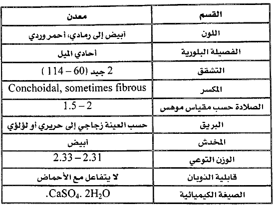 ويبين الجدول التالي المعلومات الأساسية للجبس: