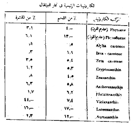 تحتوي ثمار الحمضيات على أنواع مميزة من الجلوكوسيدات مثل النارنجين Naringin والهيسبدين Hesperidin بعضها مر والبعض الآخر عديم الطعم. توجد في غلاف الحز وفي الجزء الابيض من القشرة المعروف باسم الالبيدو. أما الفيتامينات وخاصة فيتامين C وبعض من المكونات الهامة للثمار فالعادة أنها تبدأ عالية وتستمر في الزيادة قليلا حتى تصل الثمار الي طور اكتمال النمو ثم تنخفض قليلا بعد ذلك، ولو أن فيتامين C قد يستمر في الزيادة حتى مرحلة نضج الثمار.