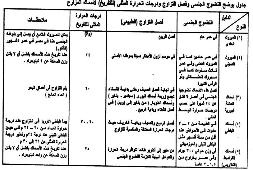 (4) فصل التزاوج ودرجات الحرارة المثلى للتفريخ