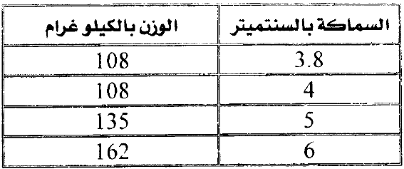 يراعي أن تكون الكانات المثبتة في الحوائط كافيـة لـحـمـل الـوزن الـذاتـي للبلاطات (ألواح التكسيات) مع ملاحظة أن متوسط أوزان المتر المربـع مـن الـرخـام بالنسبة للسمك على النحو التالي:
