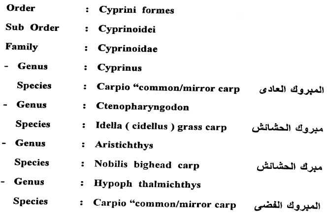 وهي مجموعة من الأنواع التي تتبع عائلة Cyprinidea وتعرف باسم المبروك وهذه تعتبر من أسماك المزارع الهامة في كثير من البلدان لأن معظم أسماك هذه المجموعة تستجيب في المزارع للتسميد الغير عضوية لأن معظم تغذيتها على البلانكتون النباتي وتقسيمها العلمي الاتي:
