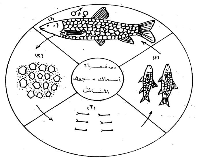 شكل يبين دورة حياة اسماك المبروك العادي او الشائع حيث