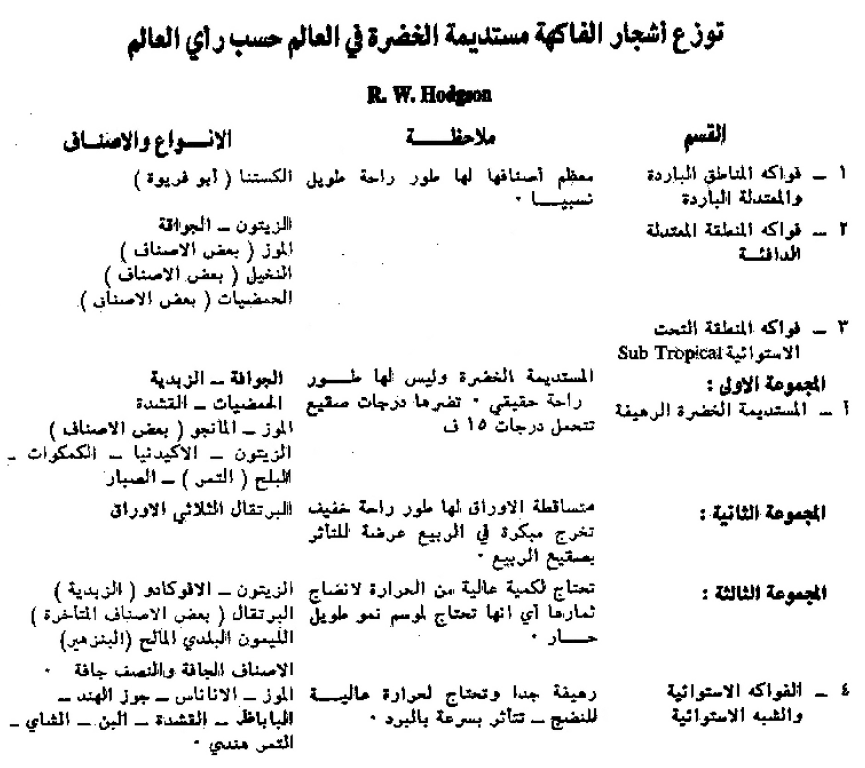 توزيع أشجار الفاكهة مستديمة الخضرة في العالم حسب راي العالم R. W. Hodgson