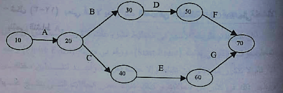 شكل (5) تمثيل مجموعة من الأنشطة بطريقة الأسهم