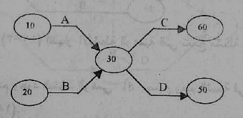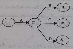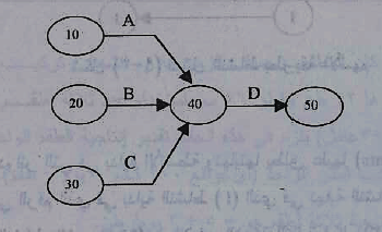 وهذه الدوائر التي في بداية الأنشطة ونهايتها يطلق عليها (Events) والرمز الذي يطلق على الرقم الذي في بداية النشاط (I) الذي في نهاية النشاط (J). ولذلك يمكن تعريف النشاط بالاسم (J,I)، فمثلا في الشبكة التالية شكل (2) كمثال لأحد الشبكات التي تستخدم في تخطيط المشروعات يطلق على النشاط A ((10,20 والنشاط B (20,30) والنشاطC (20,40) والنشاط D 50,30)) وهكذا .