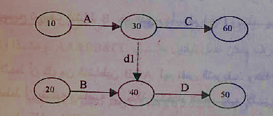ففي حالة عدم وجود النشاط الوهمي d1 يصبح رسم الشبكة في هذا الجزء كما في شكل (10)